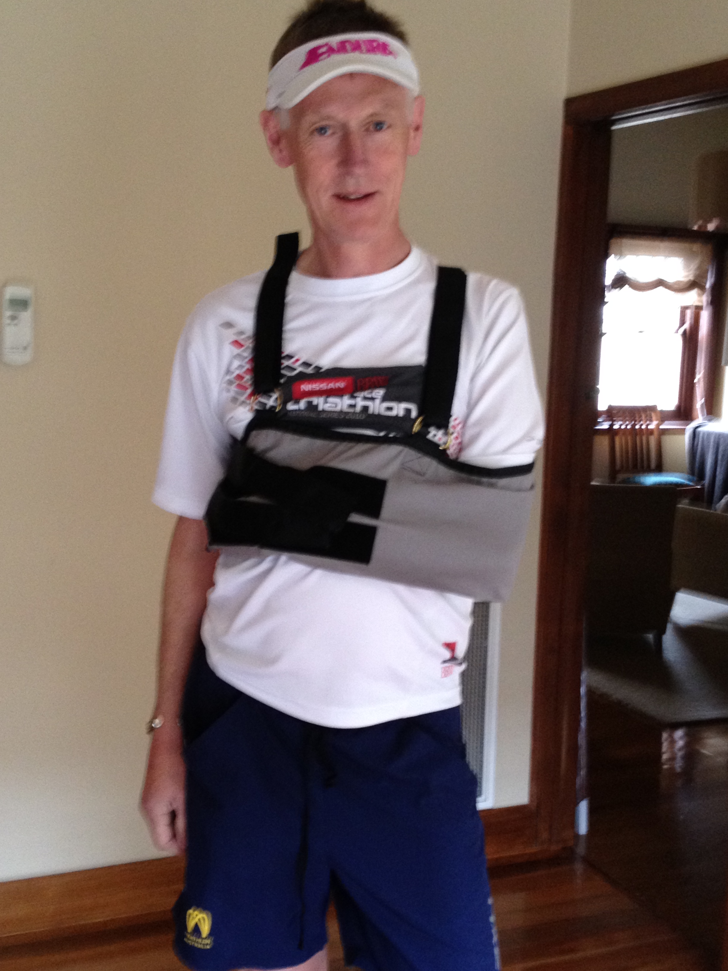 In the early days after my accident I started to research how I was ever going to do the activities I loved. Swimming and bike riding were not on the immediate agenda, but my main passion of running seemed something I could achieve. I had tried to jog a few steps in my normal sling and there was no doubt that the arm bouncing was going to be a massive problem. I started looking on the ubpn (United Brachial Plexus Network) site and stumbled across a gentleman called Dan Aldrich who had designed a sling. An email was sent and Dan quickly replied with all the measurements that I needed to send. They were sent and the wait for it to arrive began.